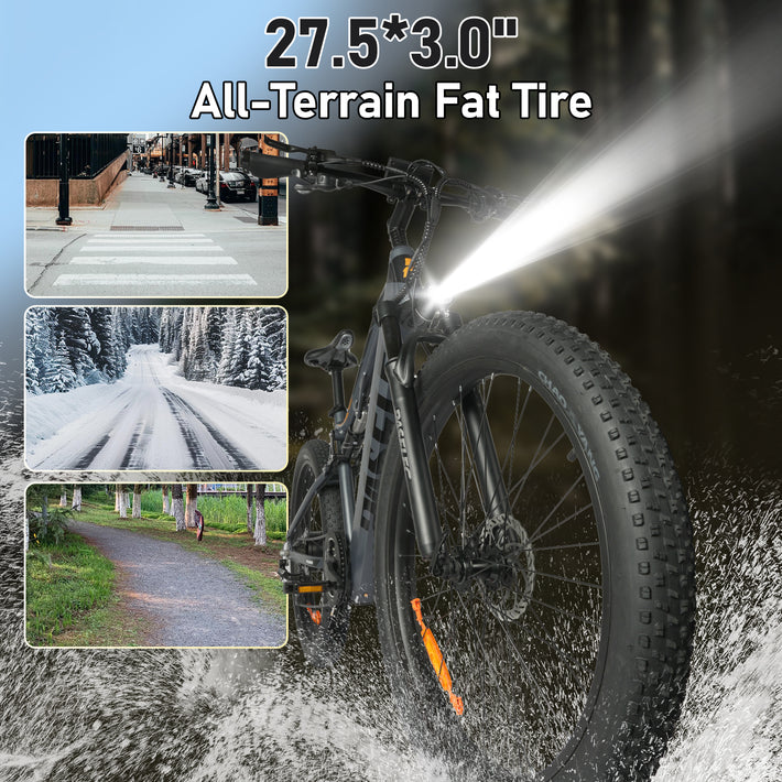 The Paselec GS9 is a high-performance, fully-suspensioned mountain bike with excellent value. It features a peak 1000W motor, a 48V 16Ah battery, 27.5×3.0-inch wide tires, and front and rear hydraulic disc brakes, making it suitable for commuting and light off-road riding.